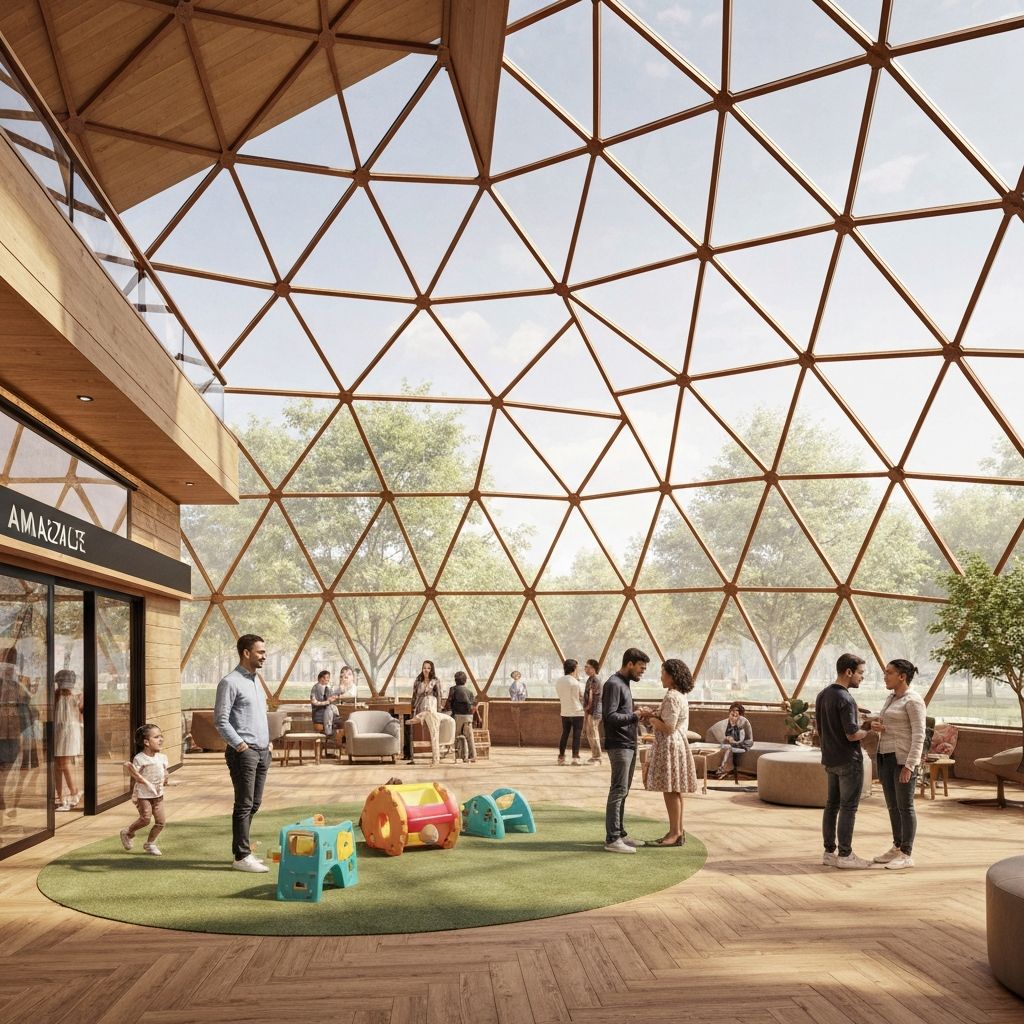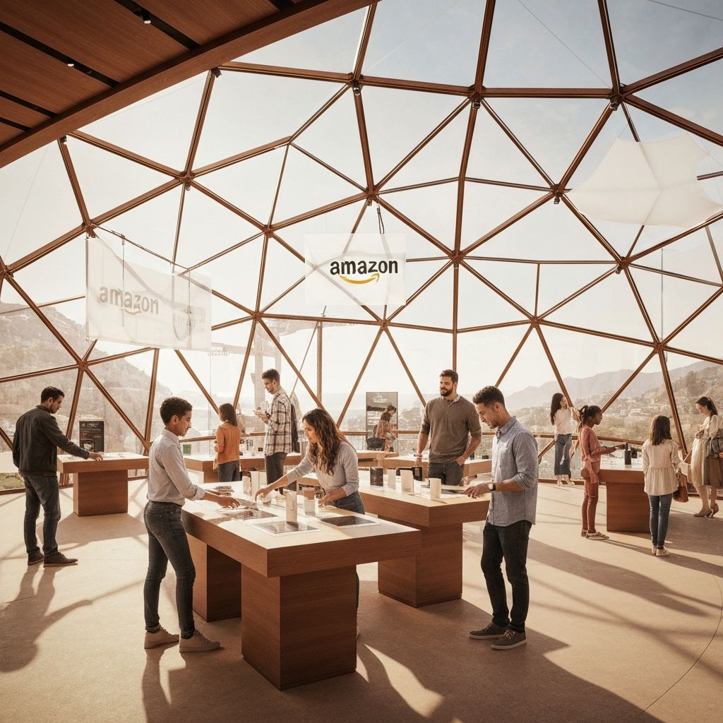 Amazon Astra Markets: Physical retail destinations featuring the complete Amazon catalog, vertical aeroponic farms, restaurants, and entertainment—all protected by proven TerraDome geodesic structures that survive hurricanes, earthquakes, and any disaster.